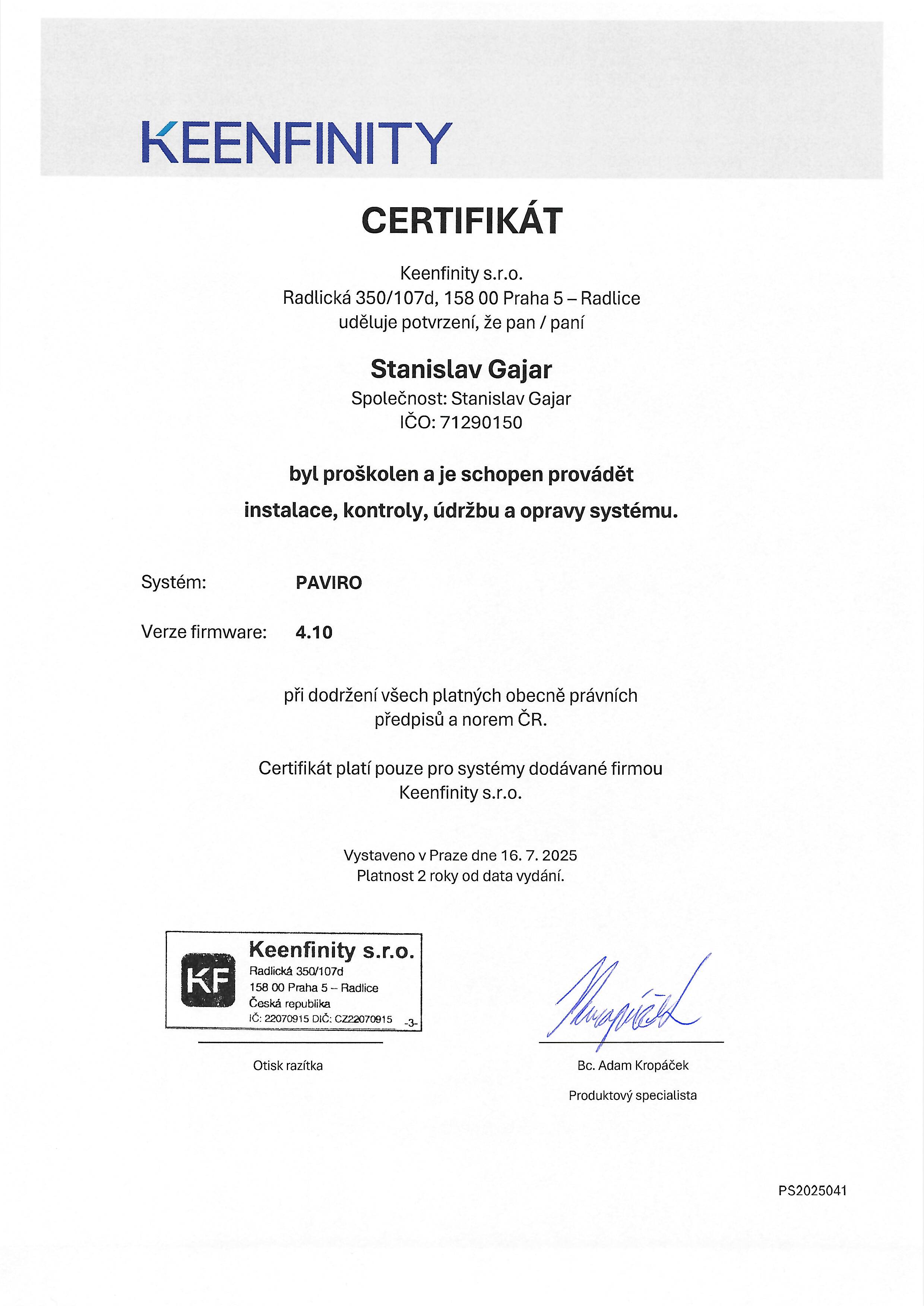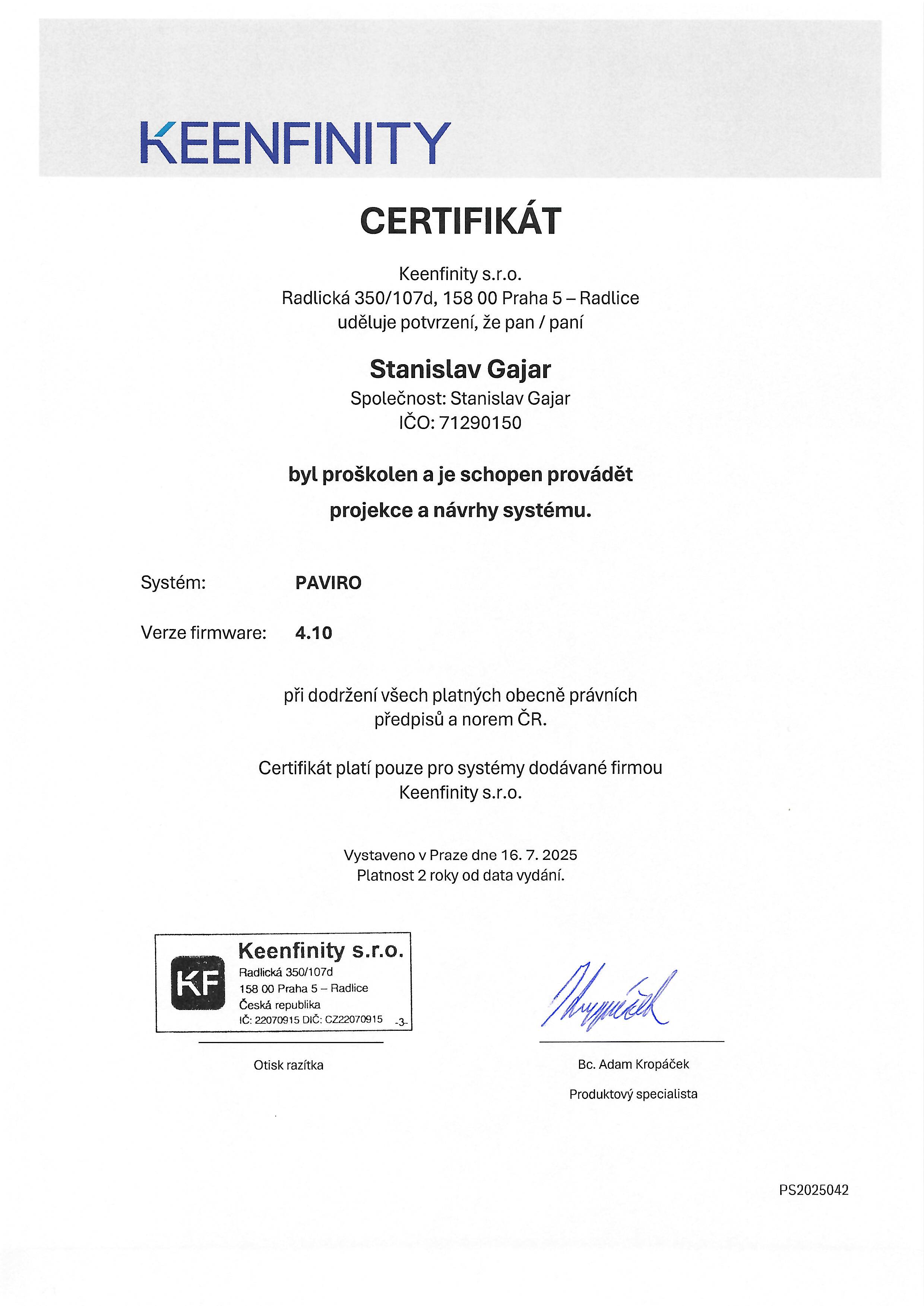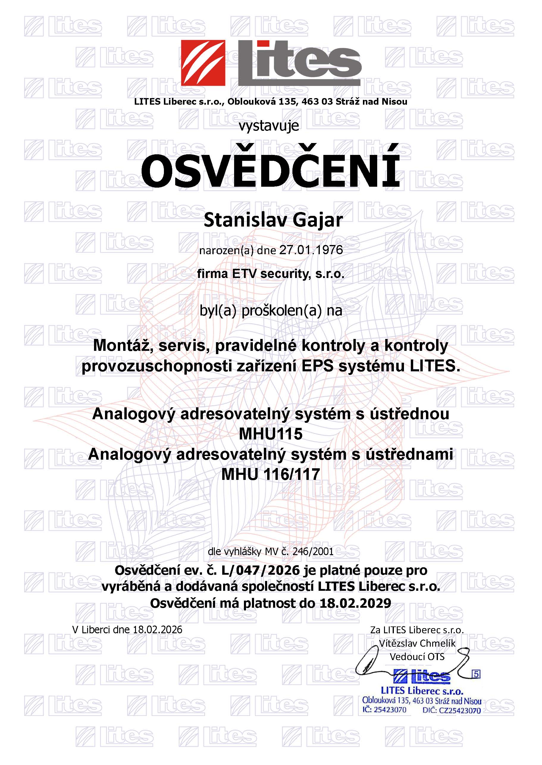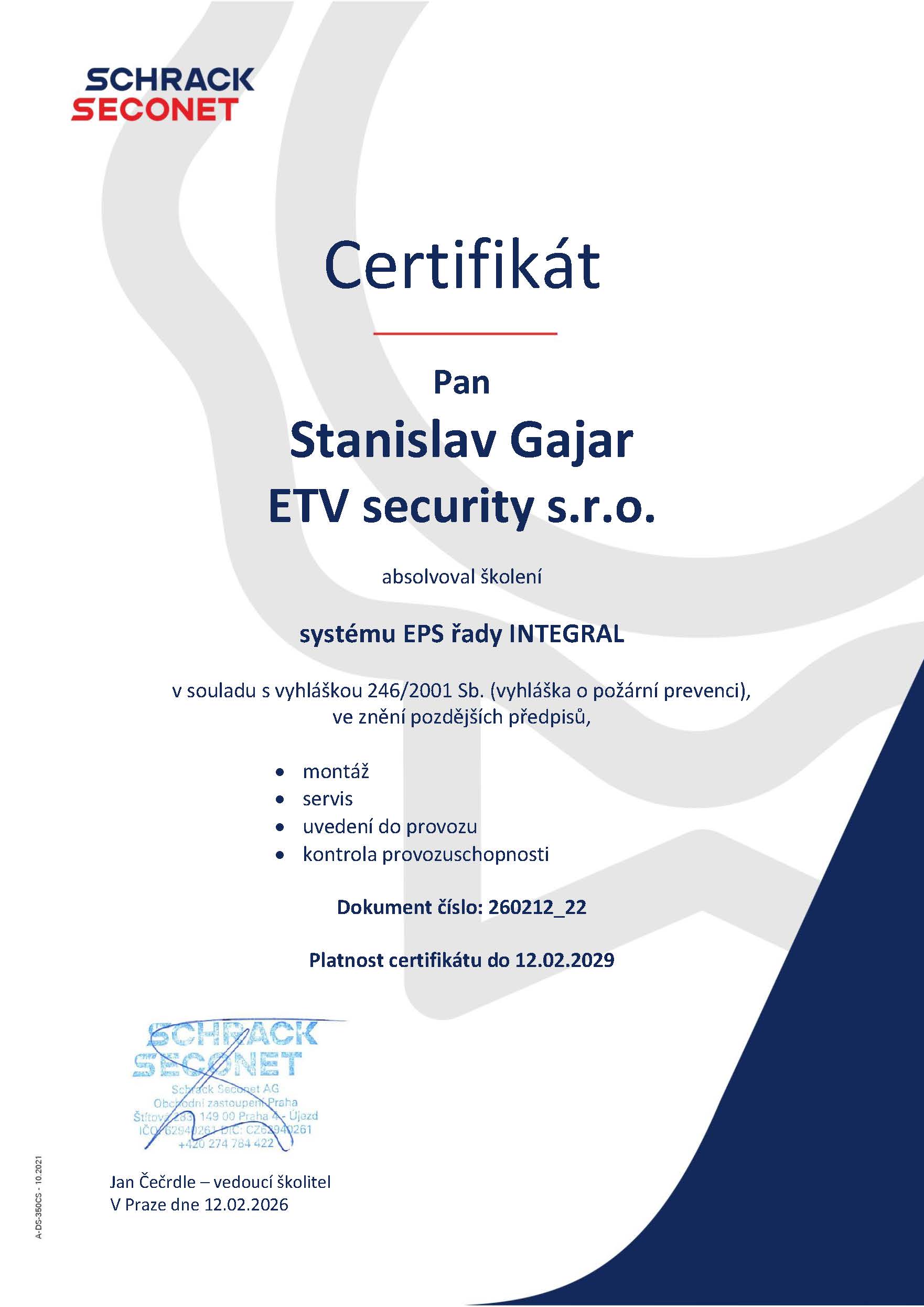 CERTIFIKÁTY CCTV