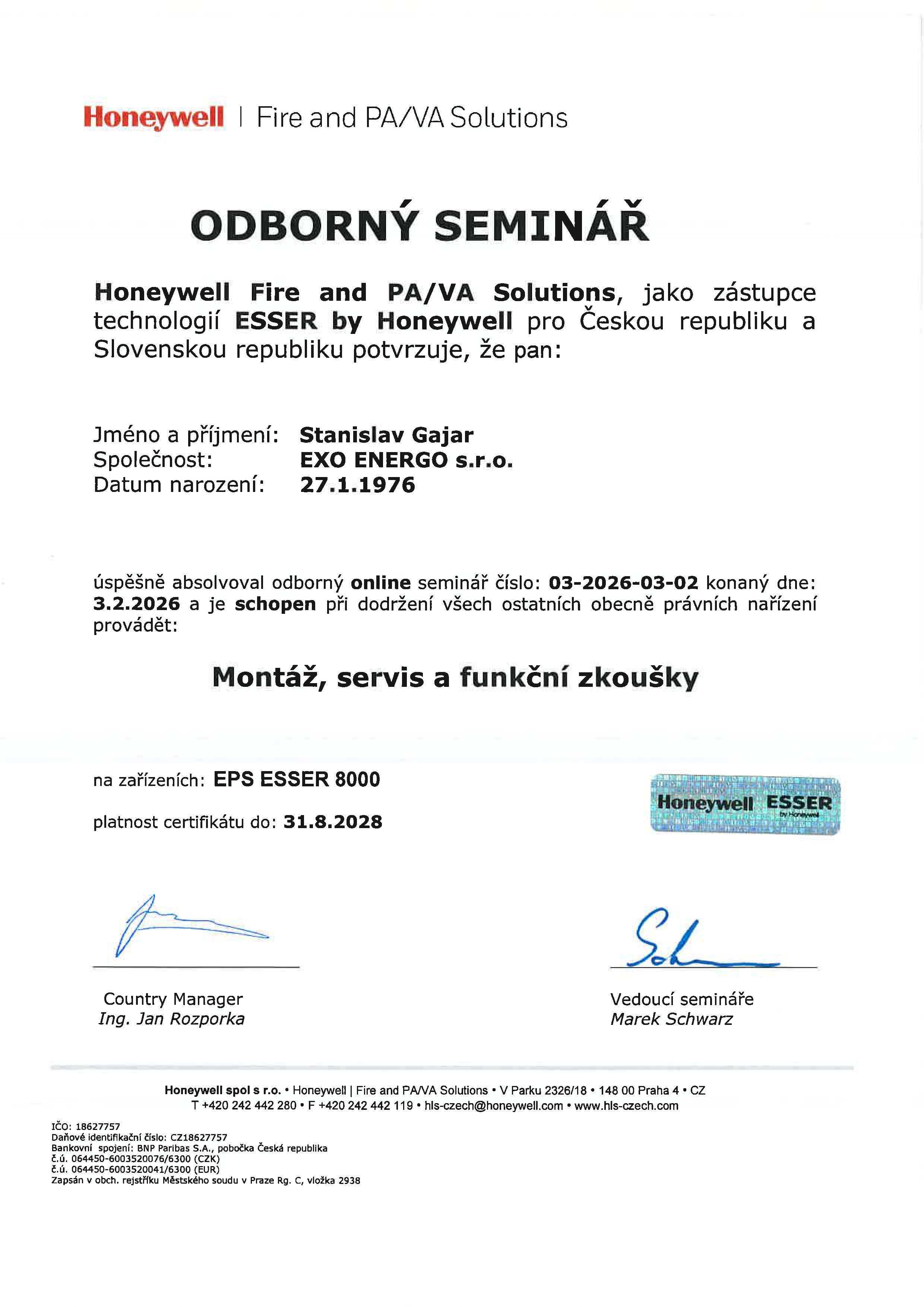 CERTIFIKÁTY EZS